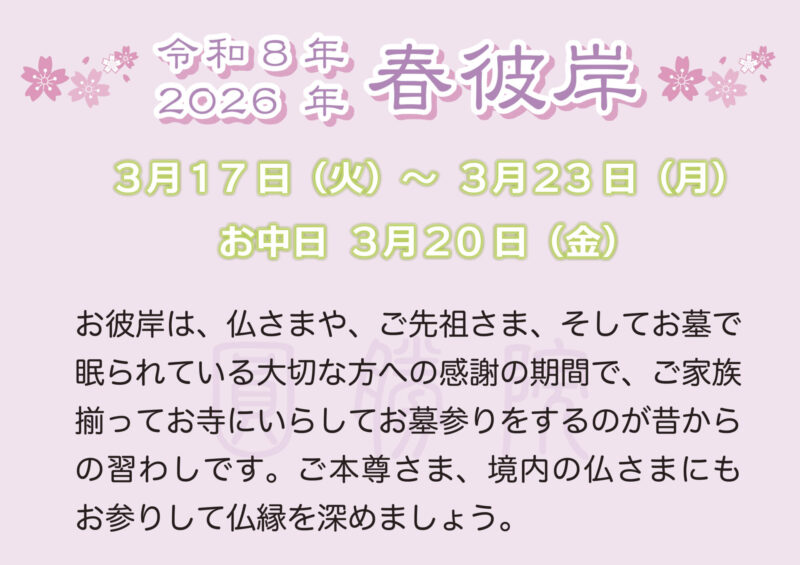2026 春彼岸のお知らせ